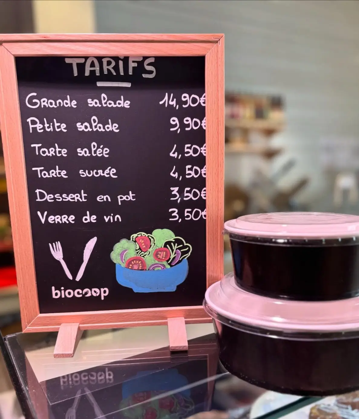 Venez profiter d'un coin repas cosy pour déguster sur place vos salades, tartes ou plat que vous aurez choisi.